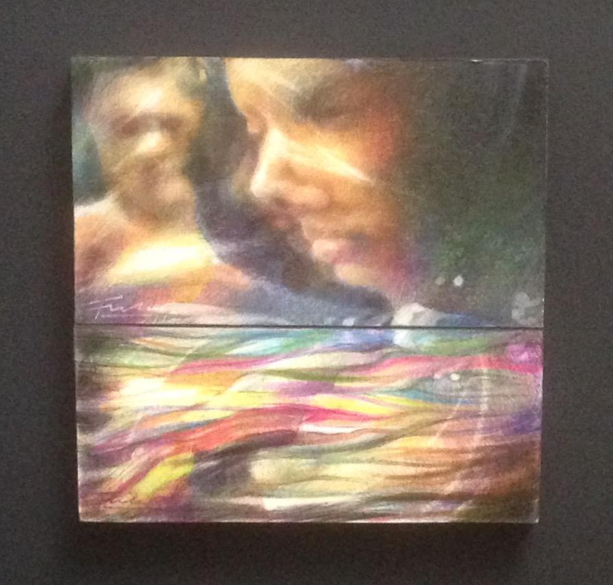 “Se noti bene, i colori sono sempre gli stessi. Nel figurativo c’erano molte sfumature, nella pittura astratta, a cui mi dedico maggiormente da tre anni a questa parte, mantengo i colori ma, ovviamente, non le sfumature. Il passaggio dal figurativo all’astratto è stato un graduale: ci sono anche opere a metà strada, dove ho mischiato figurativo ed astratto”.